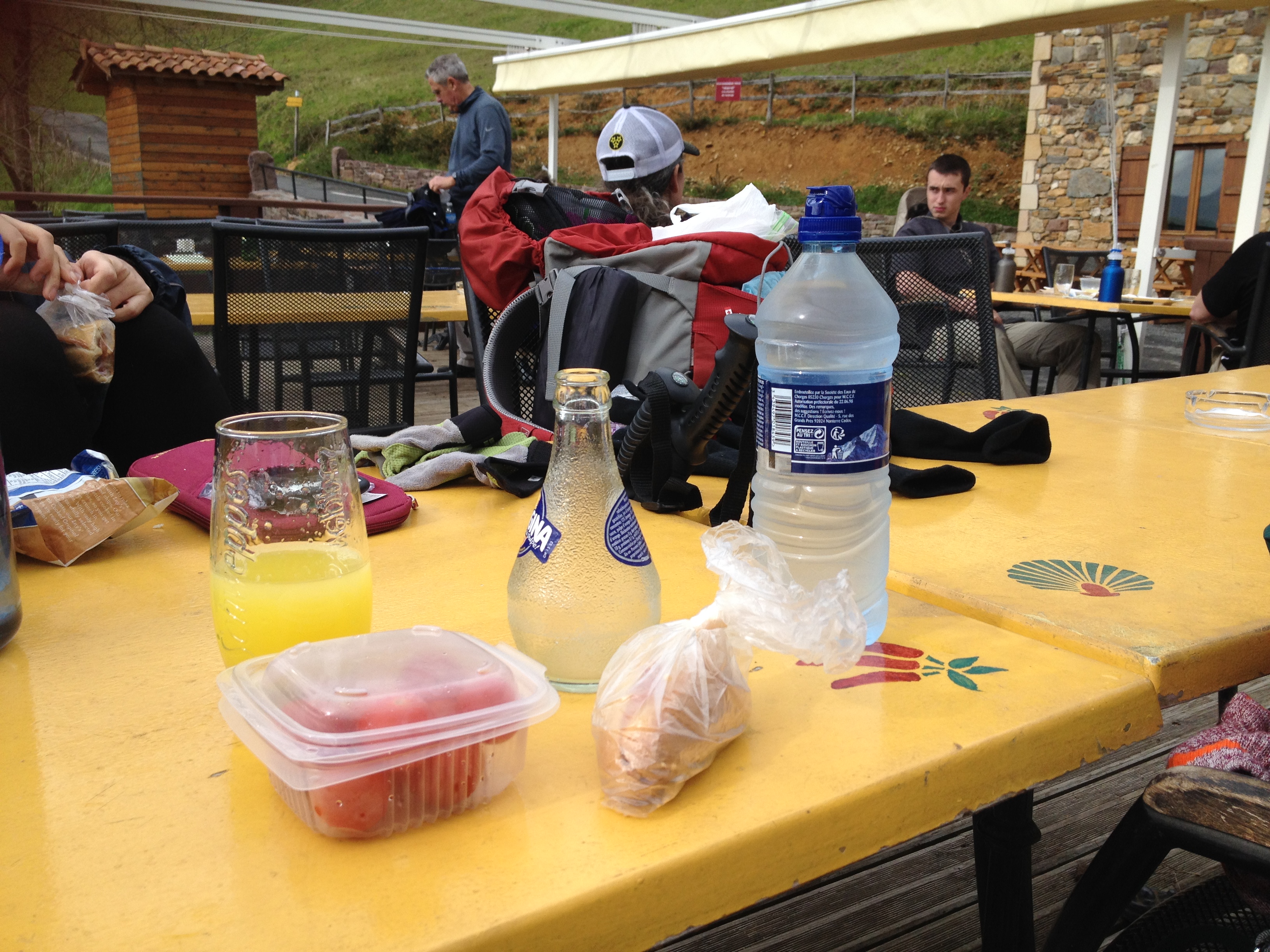 짐을 챙겨서 나오니 테이블에 몇몇 순례자들이 식사를 하고 있었다.