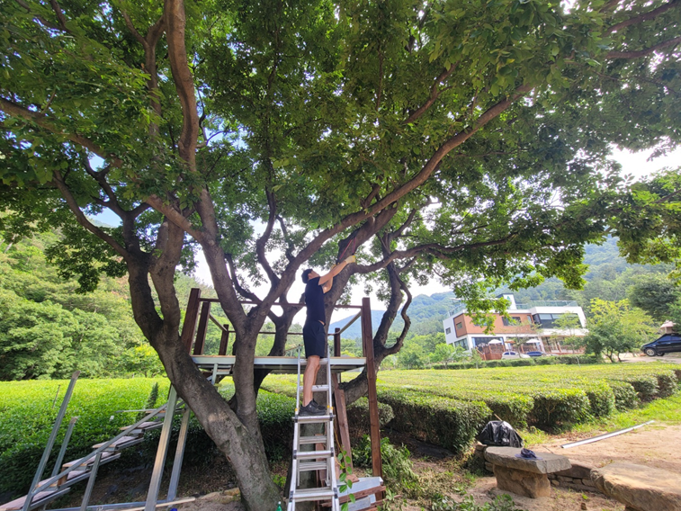차밭을 바라보며 가볍게 차 한잔 할 수 있는 공간을 만들고 있다.