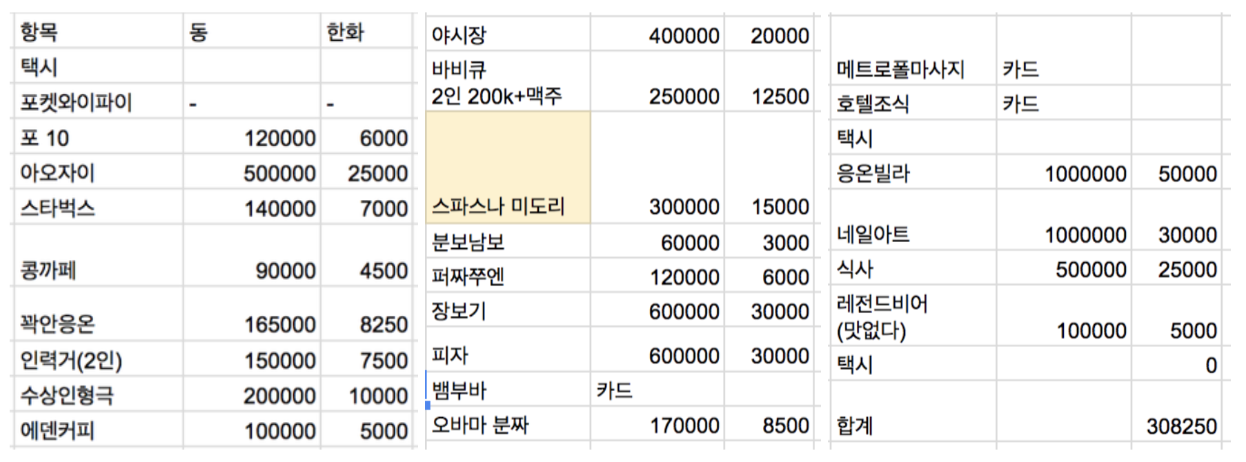 예산안도 대충 작성해봅니다. 이런 식으로요.