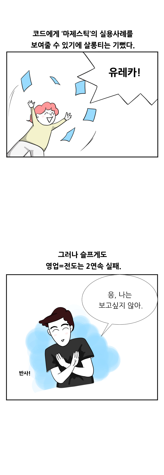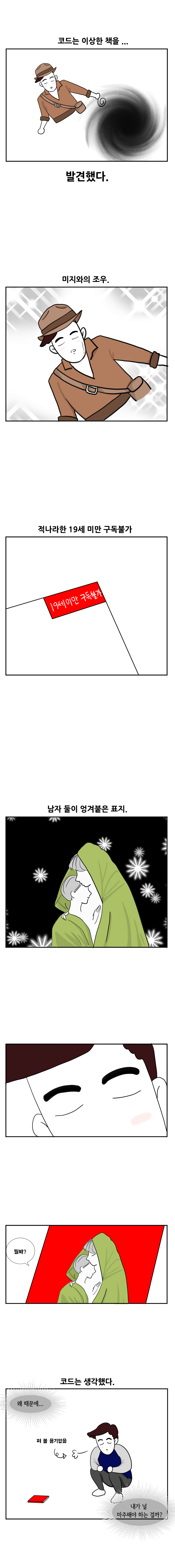 [개발자와의 연애] 웹툰-개러브하우스 2화mayhjj (47)in #kr • 8 years ago (edited)안녕하세요! 아직 부족한 점이 많은 @mayhjj 입니다. 알아서 해주길 바라는 로맨스 덕후 아내와, 알아서 아무것도 못 하는 공대생 남편이 살아가는 이야기. 2화 시작합니다 :) 아직 툴 다루는게 익숙하지 않아 3화는 다음주 주말까지 업데이트할 예정이며 이후부터는 주 1회 연재를 목표로 하고 있습니다! 봐주시는 스팀잇 여러분, 항상 가정에 건강과 행복이 가득하세요! 1화보기 네이버 별점주기 레진 별점주기 #kr-newbie #kr-love #kr-webtoon #art
