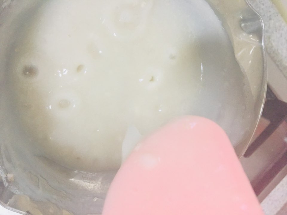 찬물 100ml에 쌀가루20g을 풀어주고 만들어놓은 채소육수 200ml와 다같이 섞어서 끓여줍니다.