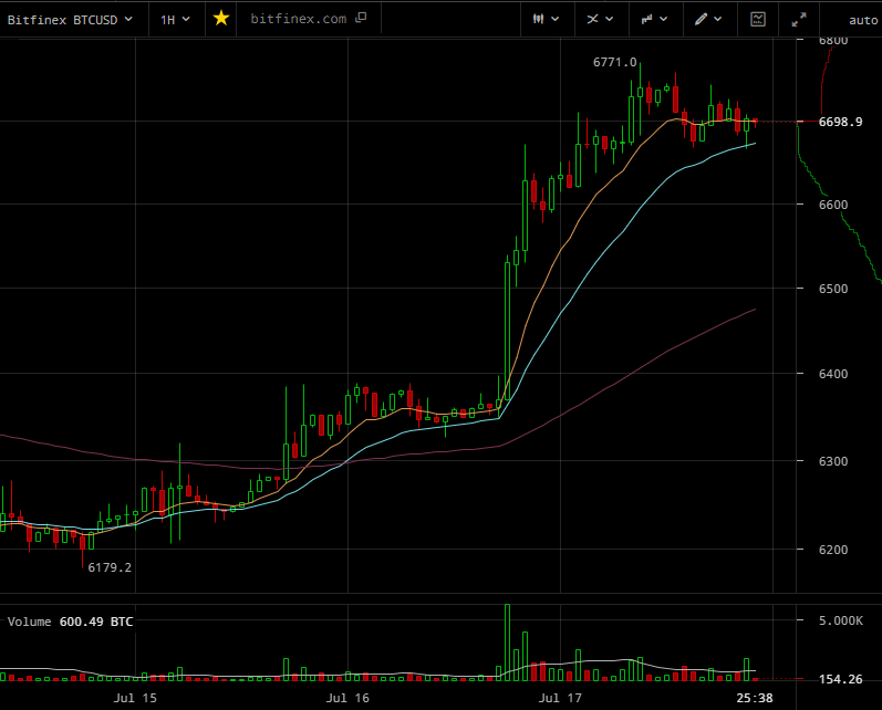 Bitfinex 1시간 기준 거래량이 평소 1~200개 수준임에도 불구하고 어제 18:00경에 무려 6,500개가 거래되면서 약 300달러의 펌핑이 있었습니다.