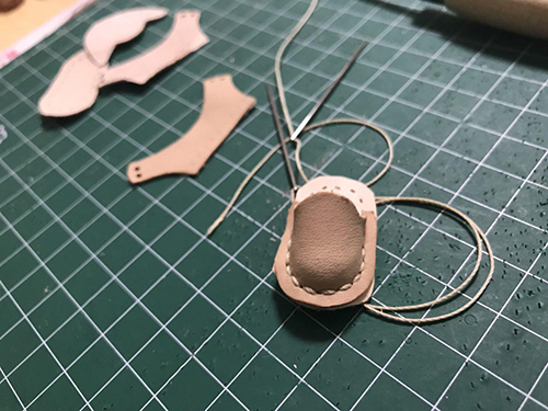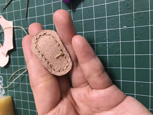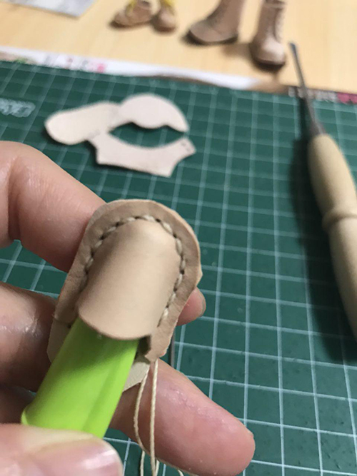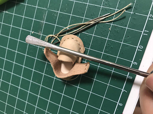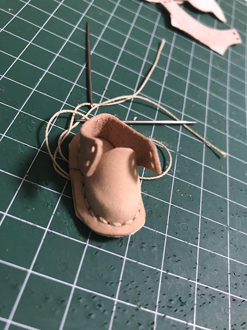 ▶ 앞코 모양이 어느정도 잡혔다면 뒷부분을 마저 바느질해줘요.