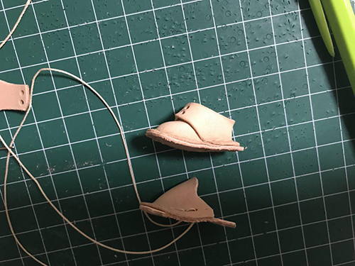 재료는 소가죽으로 통가죽이라고도 하고 마찌피라고도 하던데 기본 살색을 사용해요. 원하는 색깔을 내기도 좋고 모양도 낼수 있어서 가장 선호하기도 해요. 1mm로 피할해서 사용하면 뒷면도 깨끗하고 한장으로 어마무시하게 많은 신발을 만들수 있어서 좋아요. ^^