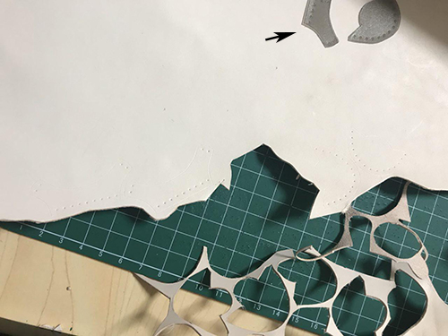 ▶ 그려진 패턴대로 가위로 대충 잘라내요. 다른 가죽공예보다 약간 편한게 단면을 보여주는게 아니라서 보여지는 면만 다듬으면 끝이라 손이 덜가는 장점이 있어요.