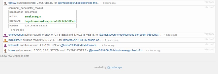 - 이 트랜잭션의 하부 트랜잭션으로 많은 사람들이 각 각의 Curation reward나 Author reward를 받았다.