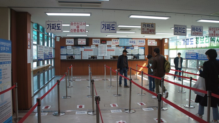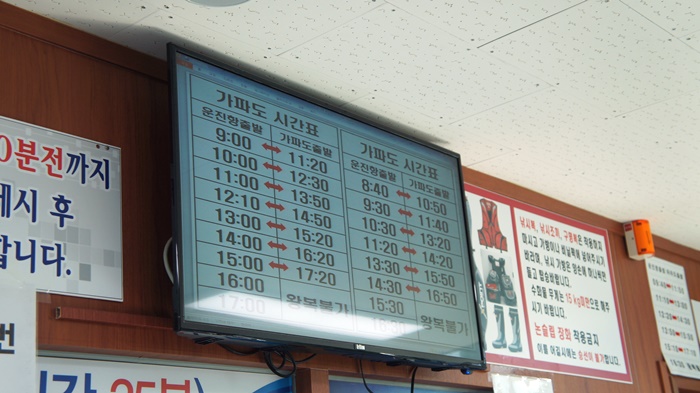 매표소 앞에 이렇게 배시간이 적혀있다.