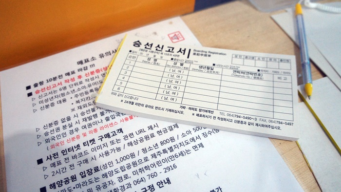 신분증을 걷고 승선 신고서를 작성하고