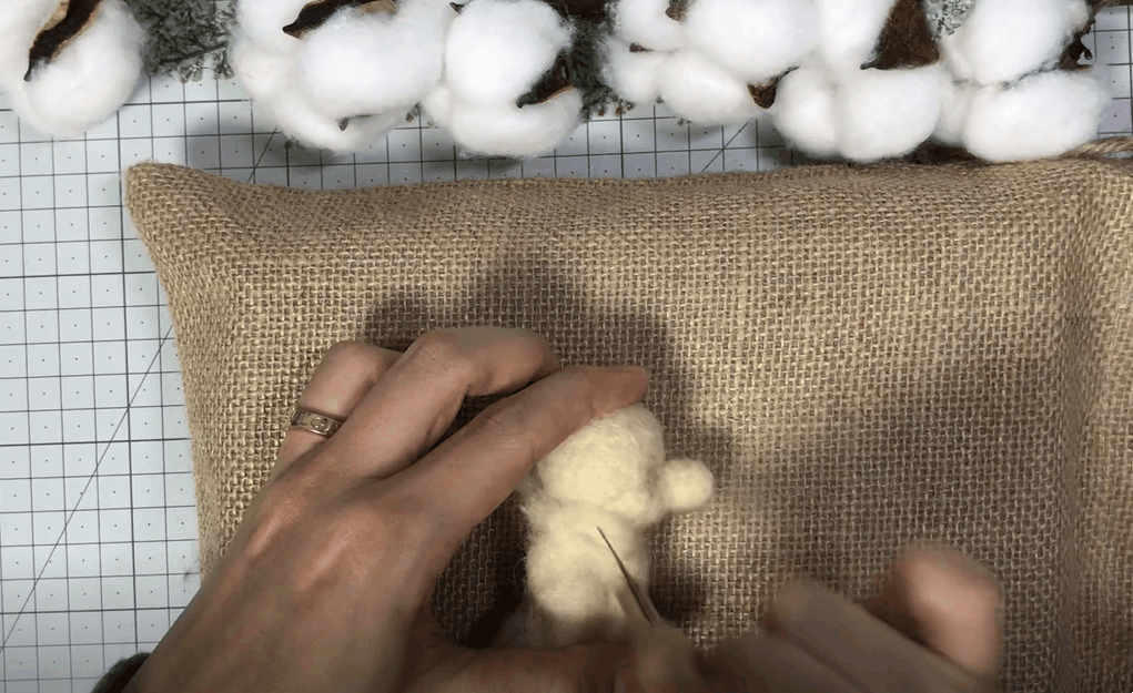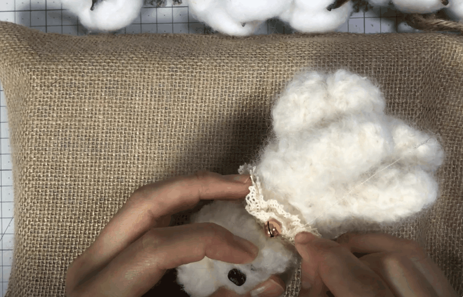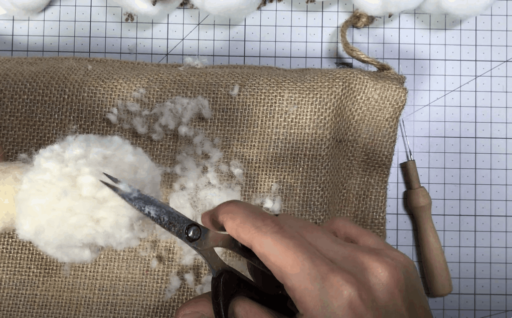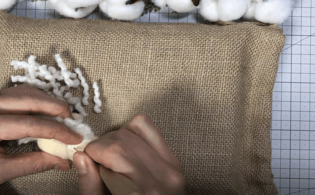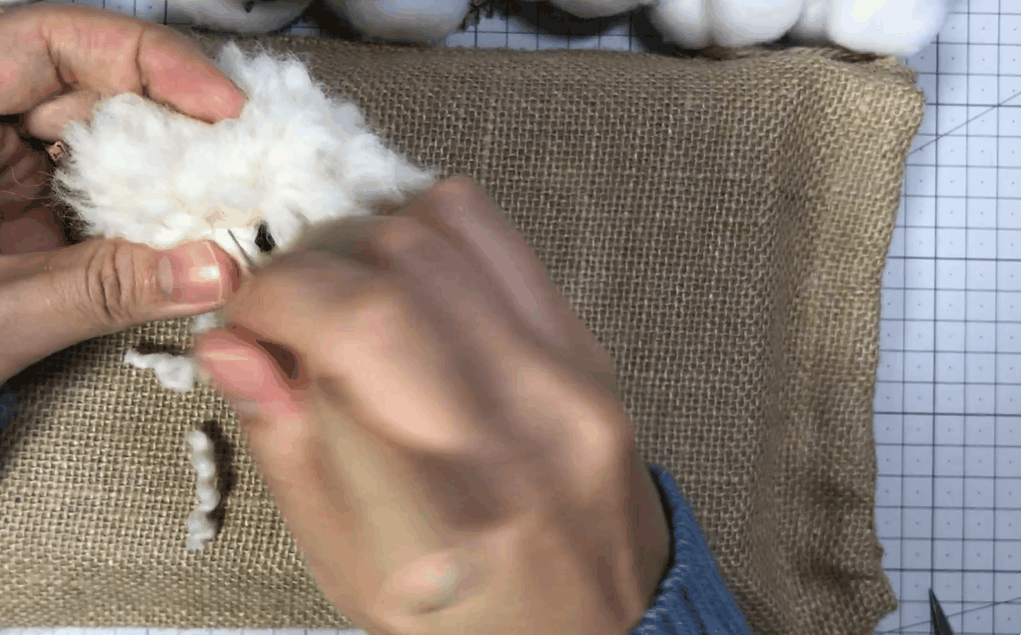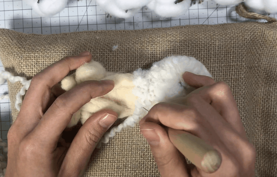 잘라놓은 구불구불한 양모를 한올한올 심어주어요!