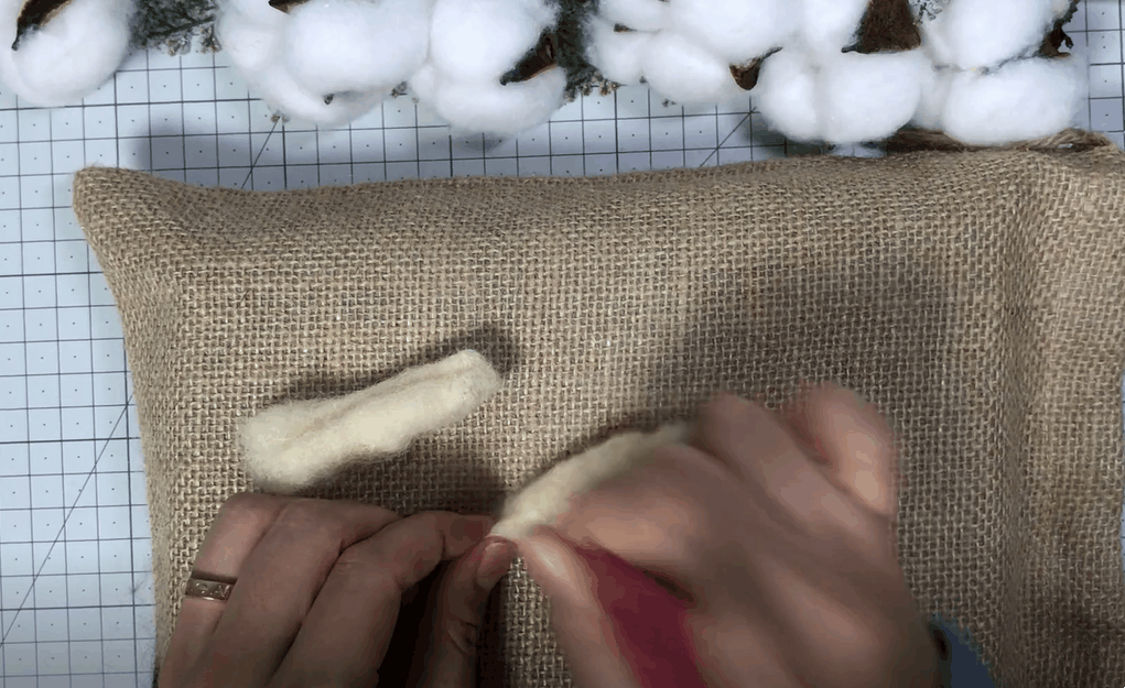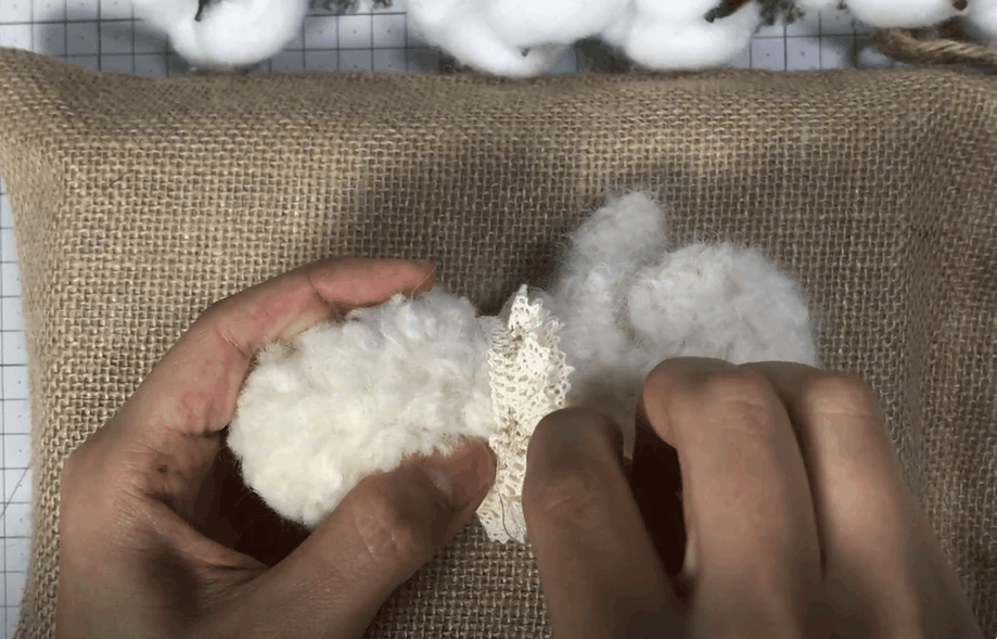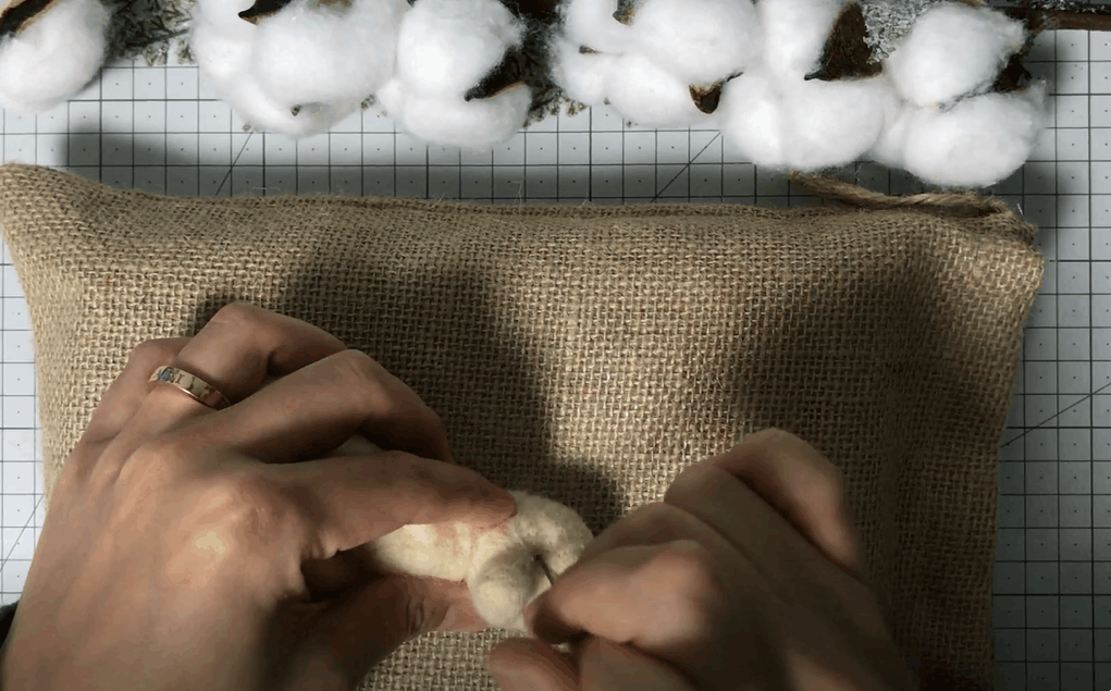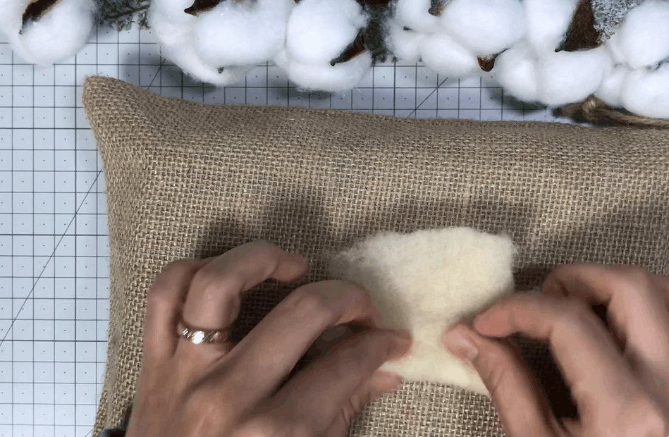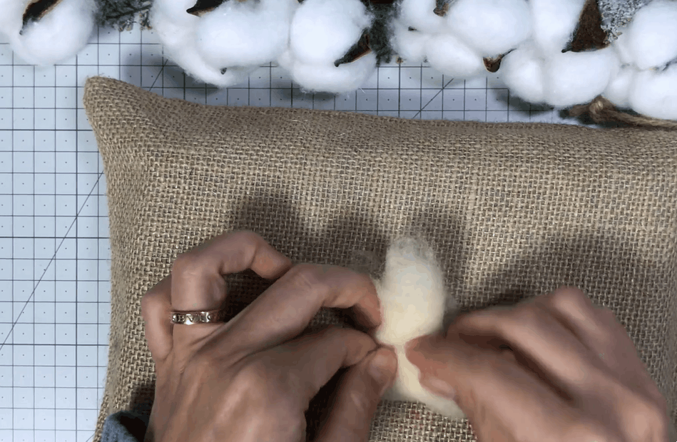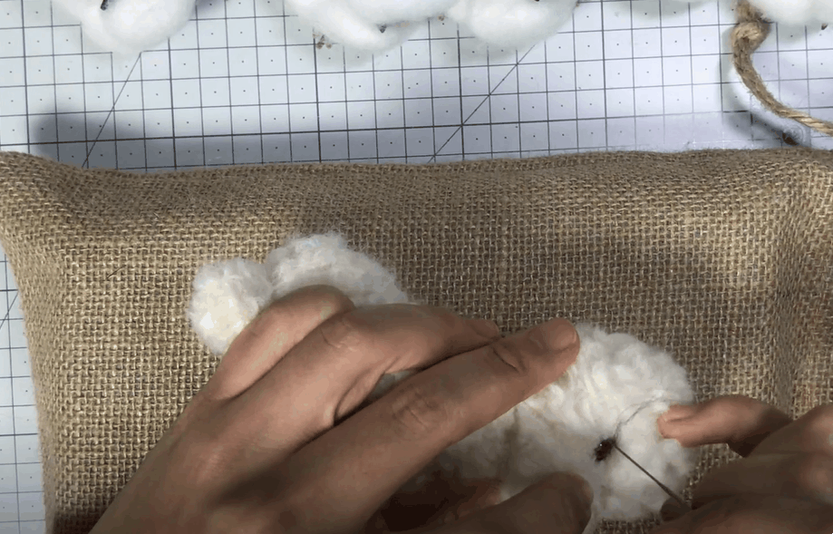 잘라놓은 구불구불한 양모를 한올한올 심어주어요!