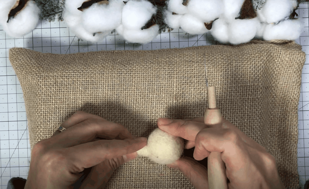 양모를 돌돌 말아서 팔이 아플때까지 찔러대다 보면 어느새 구 모양이 만들어진답니다. ㅎㅎ