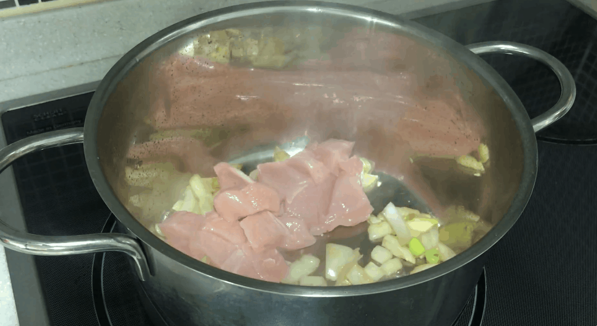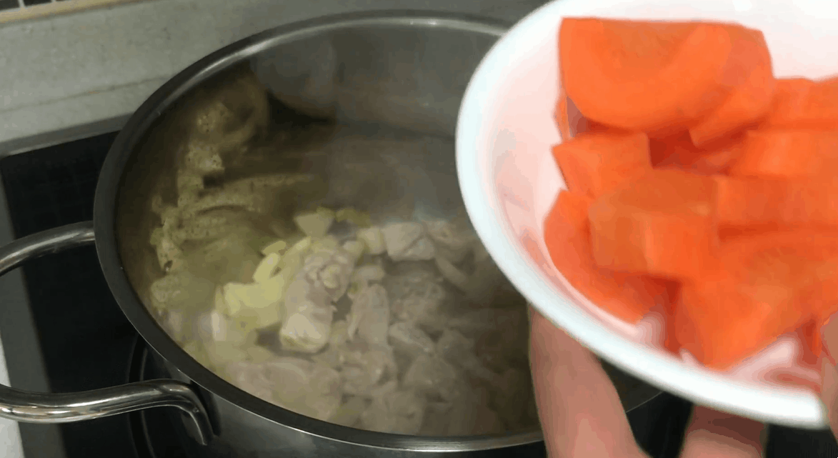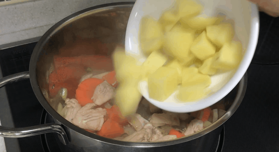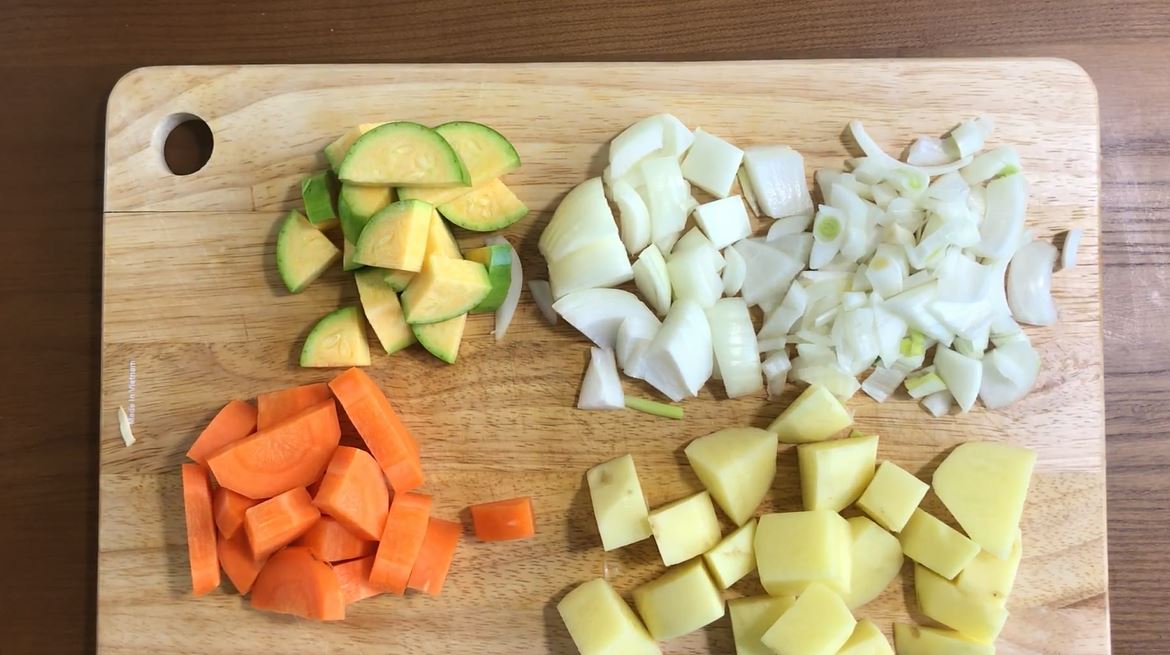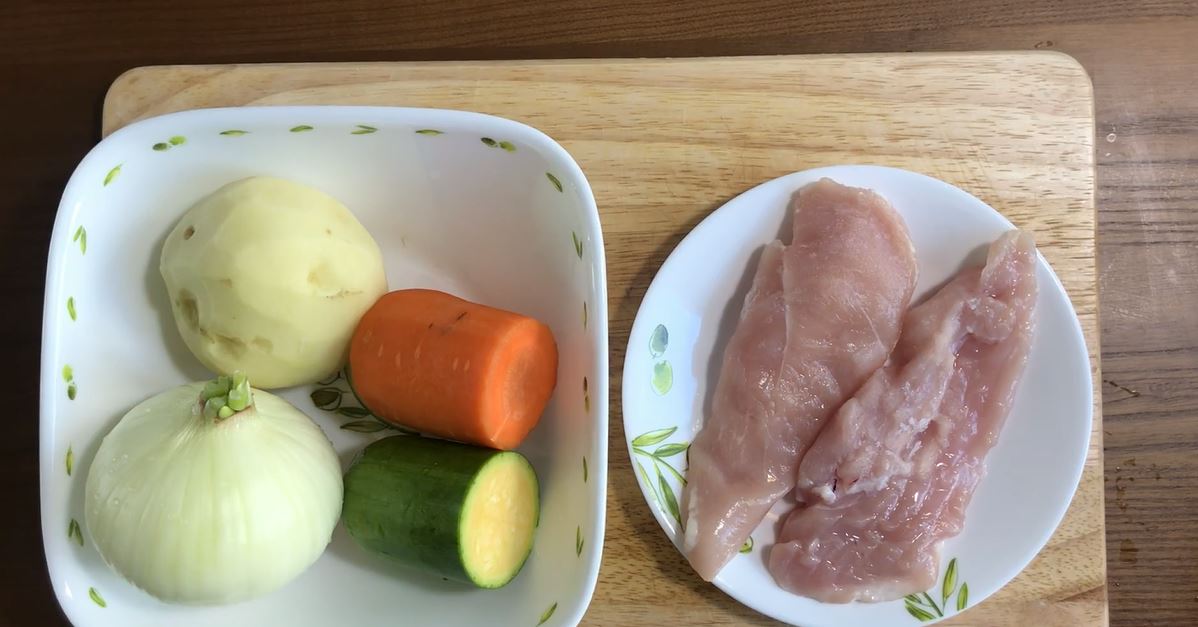 닭가슴살 넣고 볶고, 당근 넣고 볶고, 감자 넣고 볶고, 양파넣고 볶고, 호박 넣고 볶았어요.