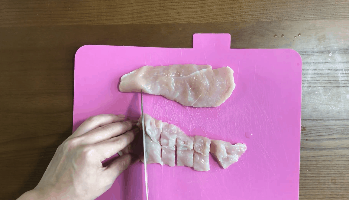 닭가슴살 도 큼지막하게 썰어서 준비!