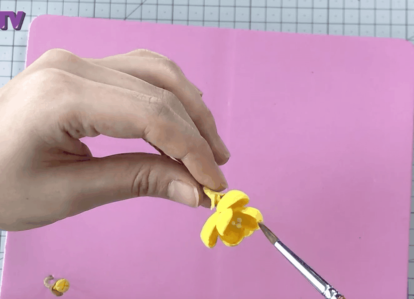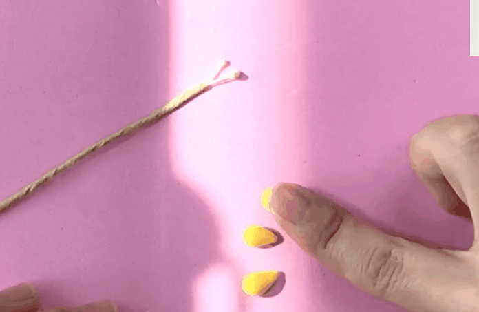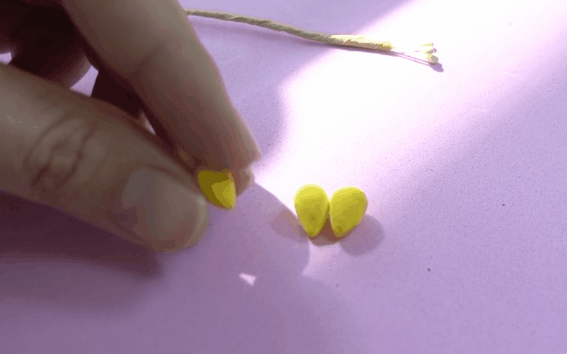 꽃잎을 만들기 위해서는 우선 노란색 클레이를 물방울 모양으로 만들어요.