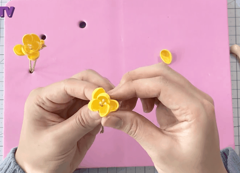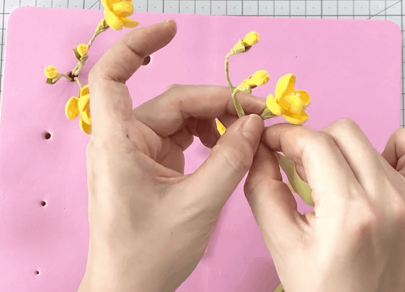 이렇게 줄기에 꽃잎을 붙여주어요.