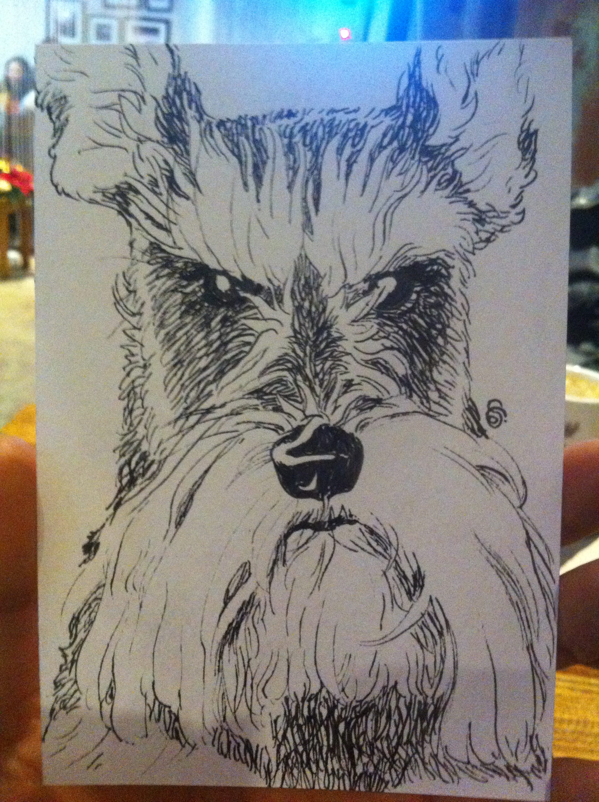 수염이 매력적인 종. 엽서용 켄트지에 펜으로 그렸습니다