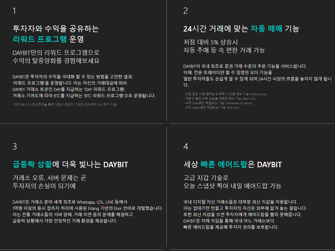 무엇보다 좋은 거래소는 투자자들에게 가장 중요한 부분임으로 이러한 부분들이 잘 충족되어져 대표 거래소로 거듭나기를 응원해 봅니다.