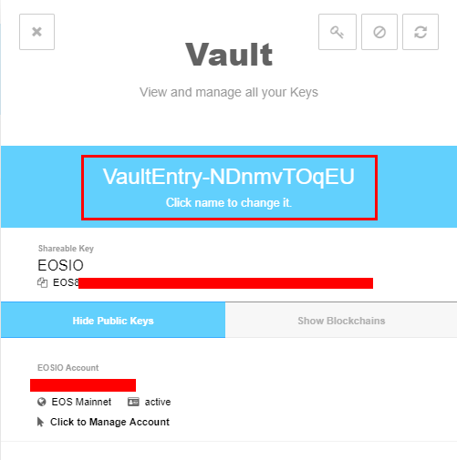 오른쪽 상단의 Vault 버튼을 클릭하세요.
