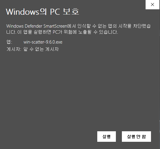 윈도우는 win-scatter-9.6.0.exe 를 다운 받으시면 됩니다.