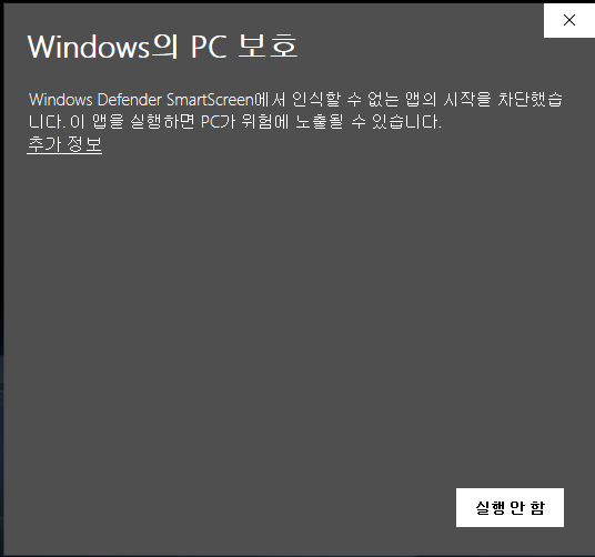 만약 윈도우 10이면 아래와 같은 메세지가 뜰 수도 있습니다.