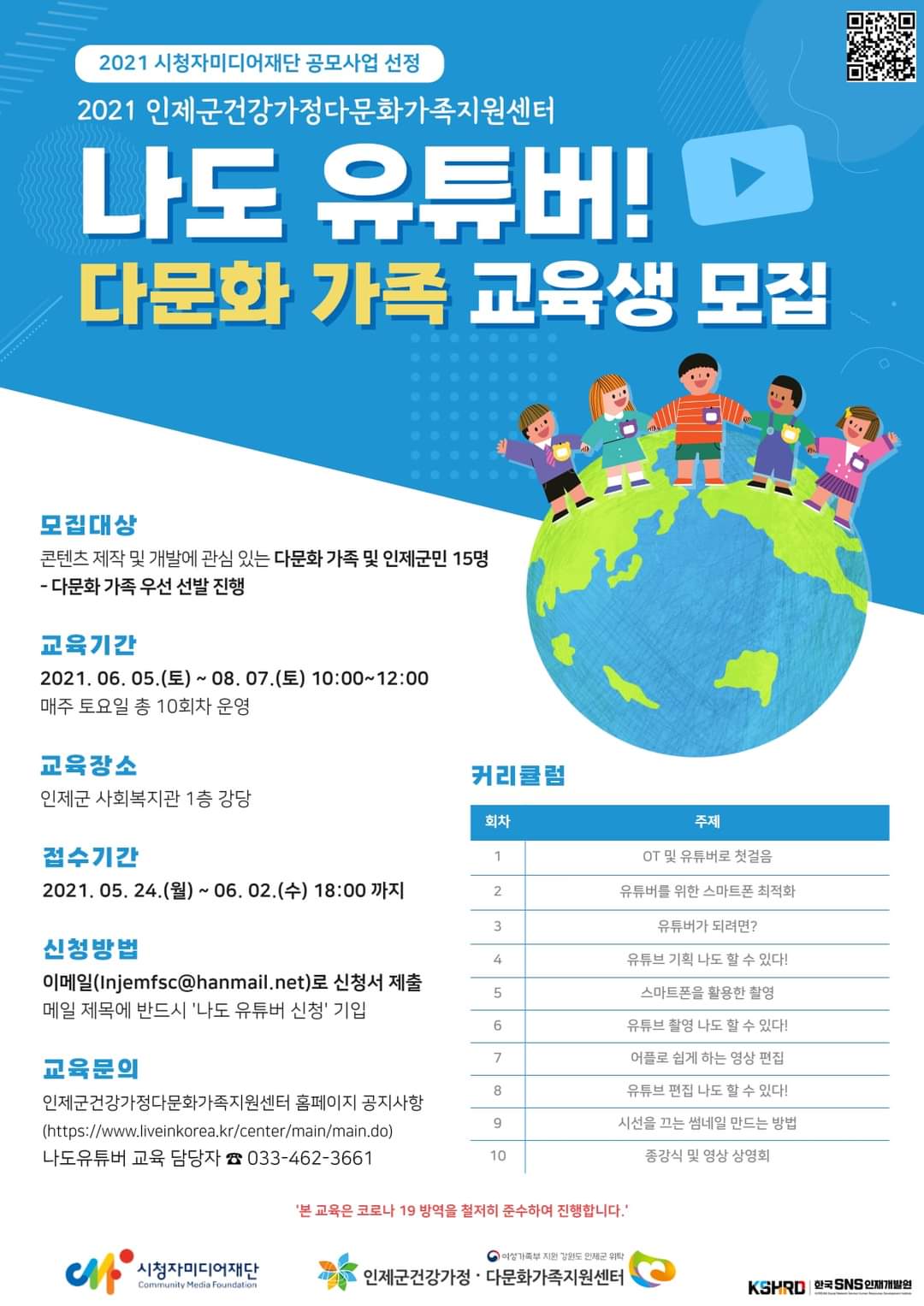나도 유튜버!naeju (51)in #kr • 5 years ago #나두유튜버! #인제군건강가정다문화가족지원센터 #다문화가족 6월2일까지 신청받아요 분의 033-462-3661 #하늘내린인제 #inje