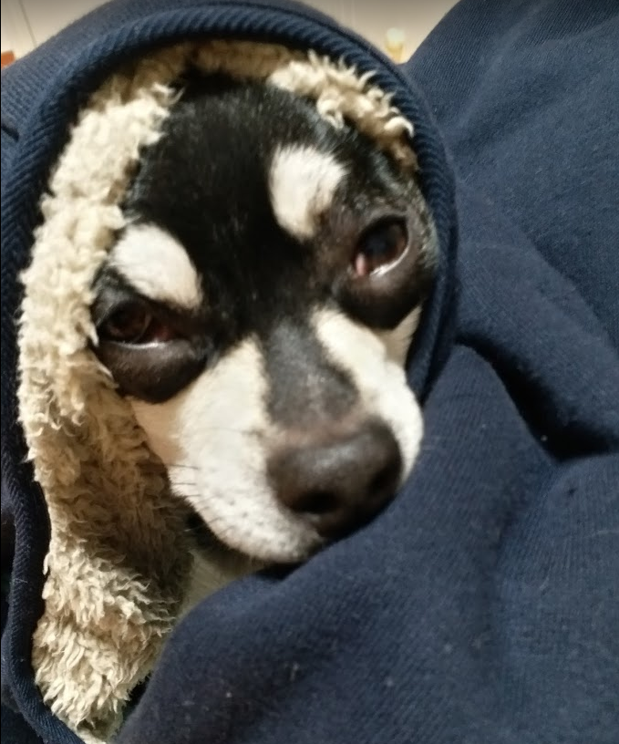 춥다고 엄마 후드티를 뺏어서 입고 있었네요.