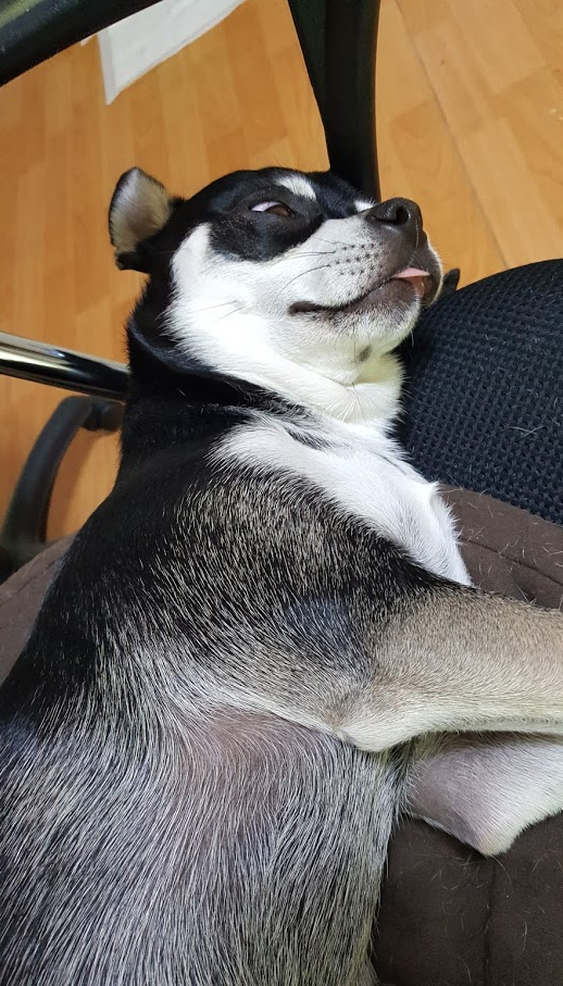 의자에서도 잘 놀아요. 그러다 피곤하면 의자에서 바로 자죠. (못생김 주의!!!)