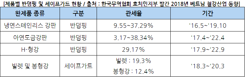 대만 철강기업인 포모사 제철의 베트남 해외직접투자로 인해 공급과잉 리스크에 직면해 있습니다. 포모사 제철이 베트남 중부지역에 건설하고 있는 포모사 하띤 공장은 생산능력이 2,250만톤으로 '17년 소비량 1,800만톤을 뛰어넘는 규모입니다. 이러한 상황으로 포모사 하띤 공장이 완공되게 되면 베트남 철강 시장은 공급과잉 문제가 발생하여 철강제품의 판매단가 하락으로까지 이어질 수 있습니다.