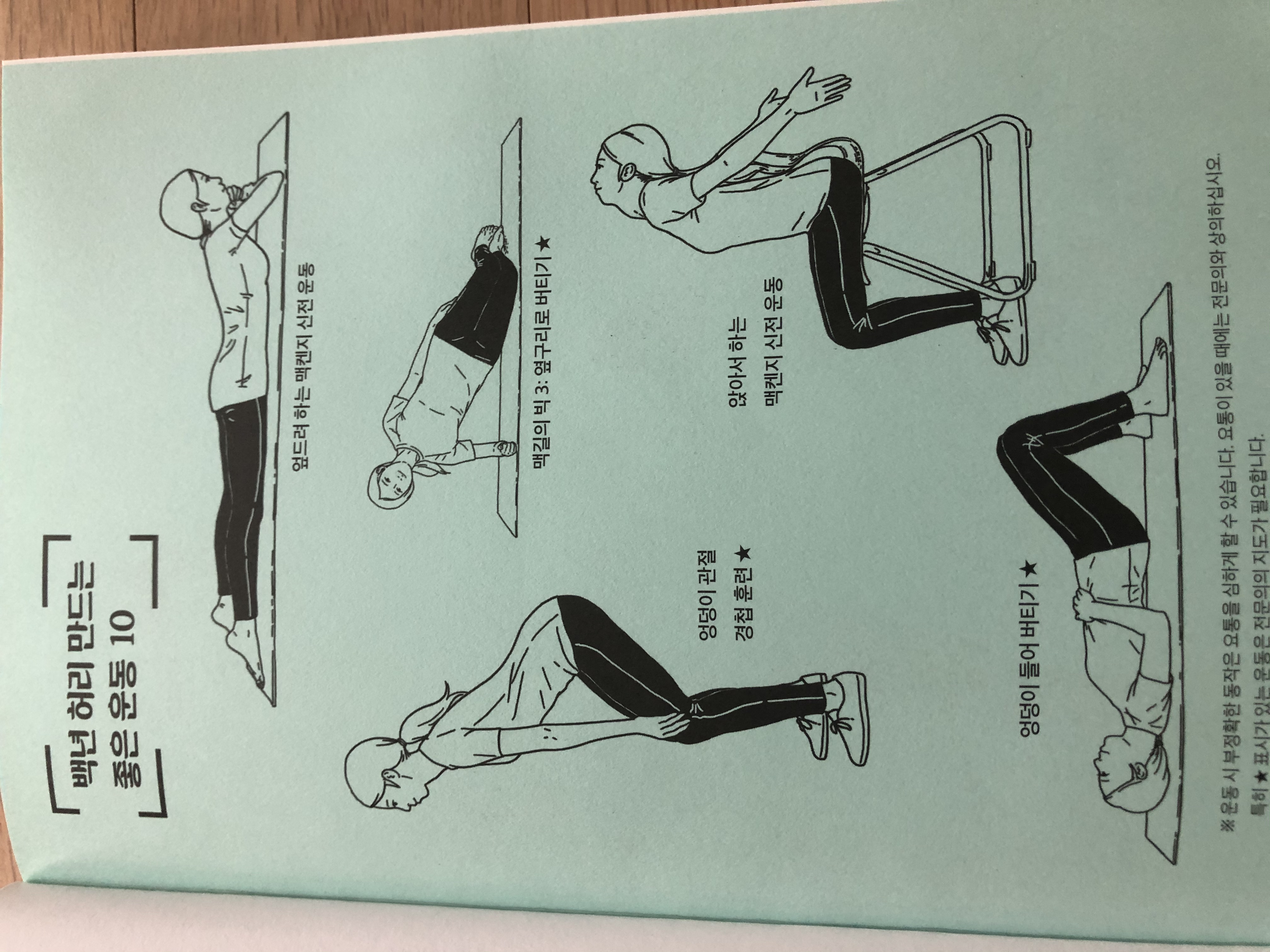 책에 실린 아래와 같은 운동들을 하는 것이 디스크가 약해진 40대 이후에는 많이 도움이 됩니다. 실제 제가 허리 통증이 있을 경우 지속적으로 하는 운동들입니다. ^^ 추천합니다.