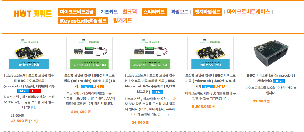 국내 총판이 아이씨뱅크인 것 같습니다. 다양한 부품들과 교육 자료들이 올라와 있어서 활용은 어렵지 않아 보입니다.
