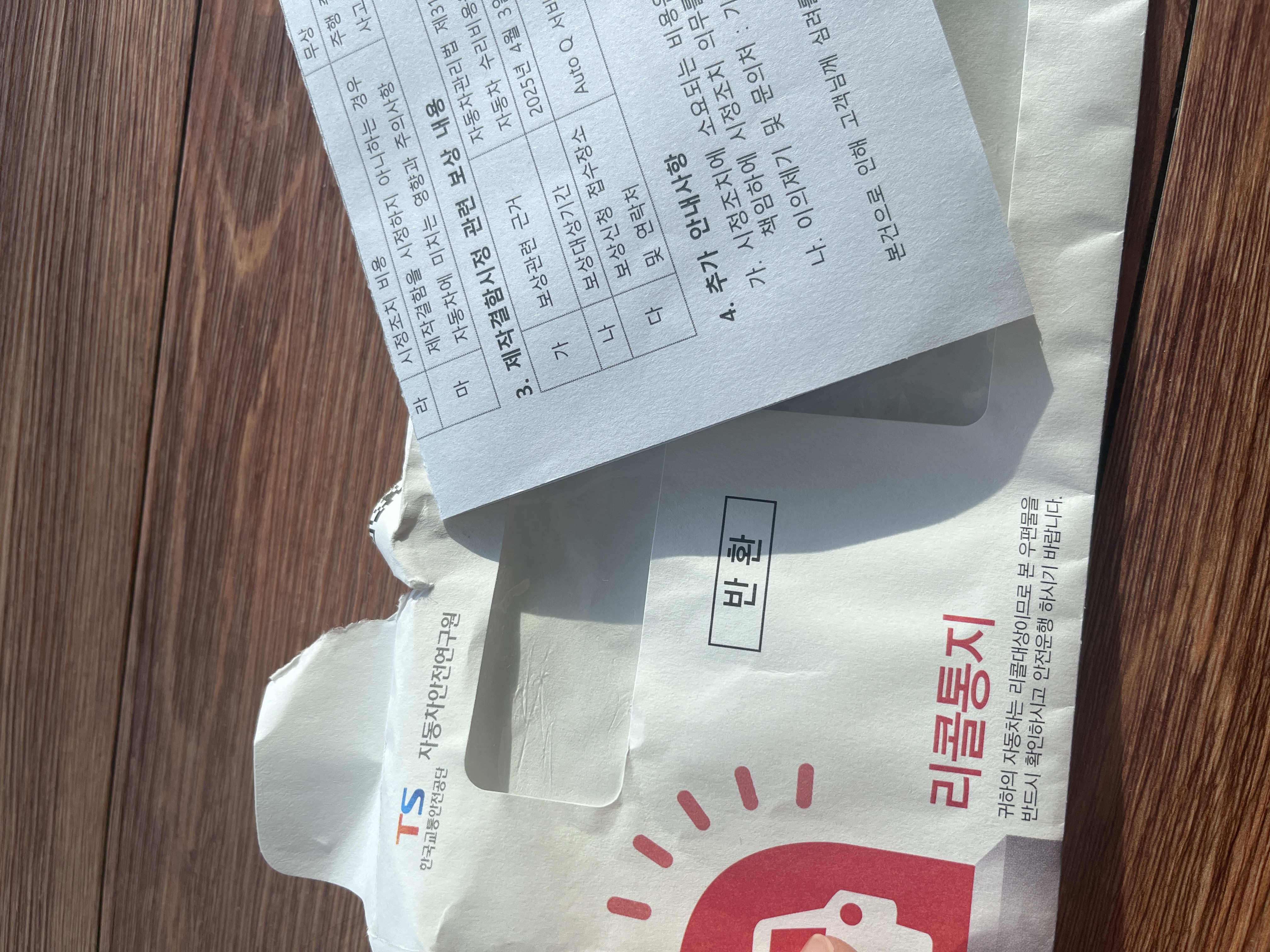 10월 중에 정비소에서 개선품으로 교환 받아라는데 10월이먄 까먹겠다 ㅠ
