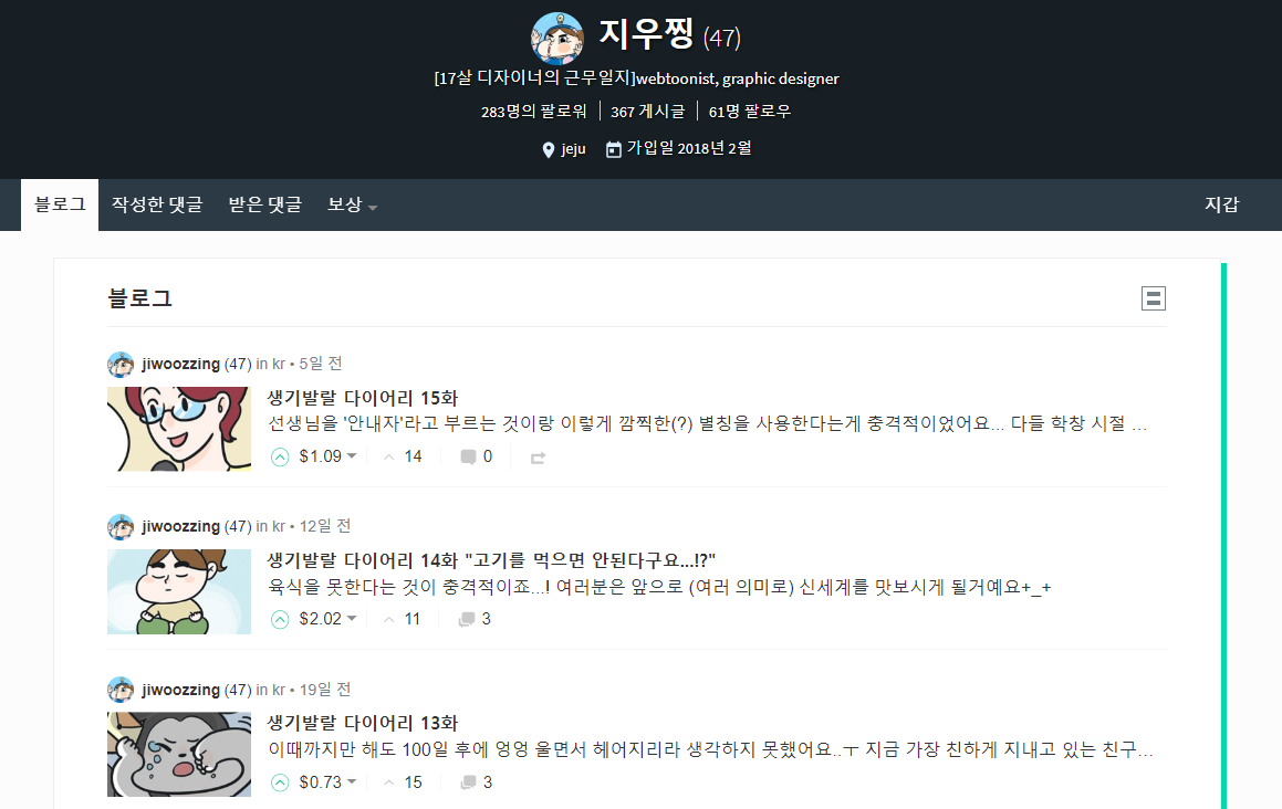 지우찡작가님(@jiwoozzing) https://steemit.com/@jiwoozzing