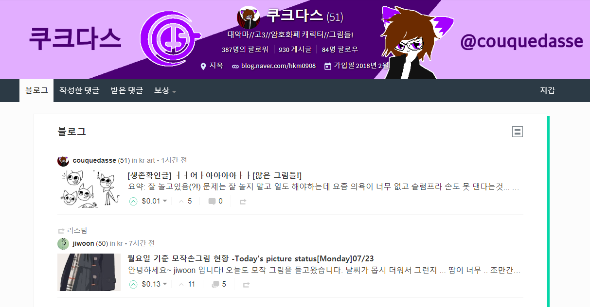 쿠크다스작가님(@couquedasse) https://steemit.com/@couquedasse