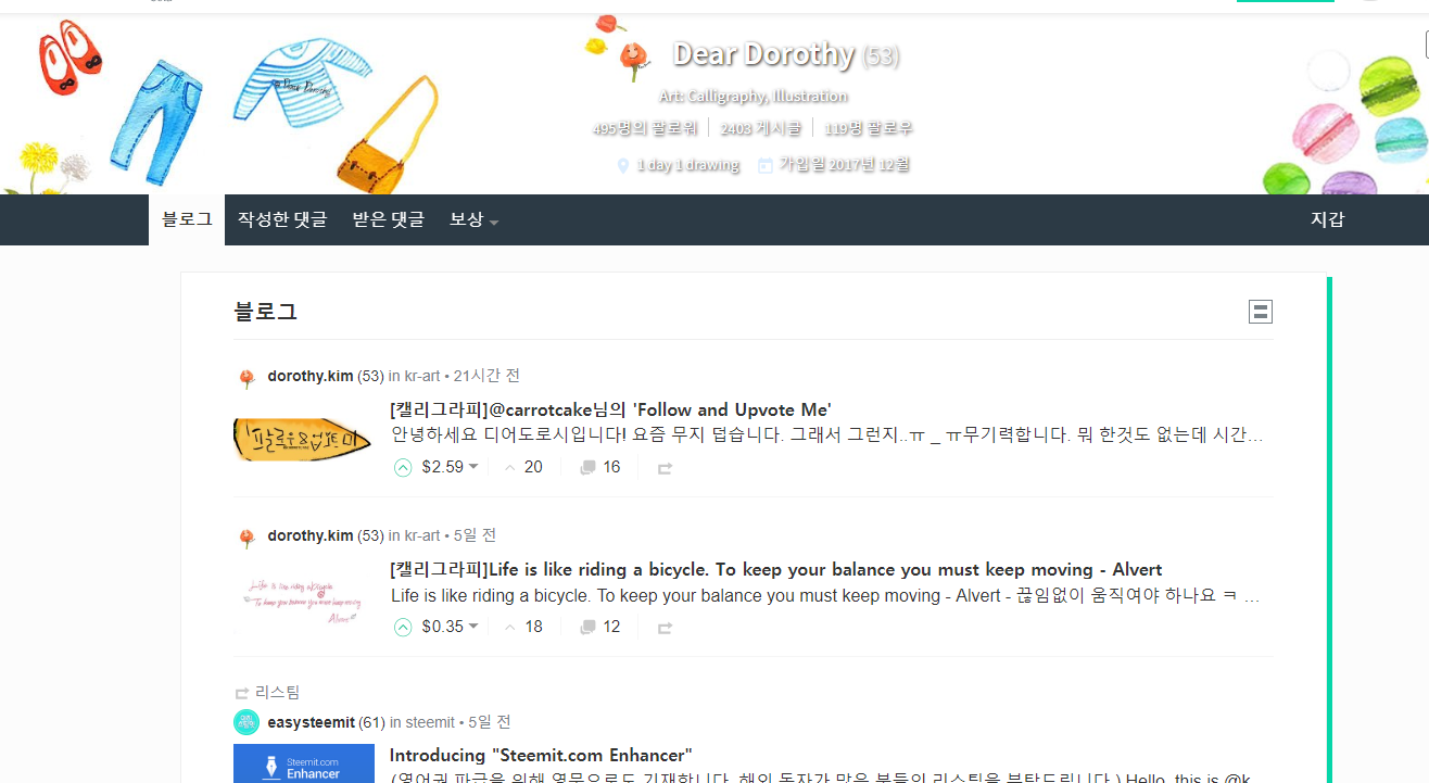 디어도로시작가님(@dorothy.kim) https://steemit.com/@dorothy.kim