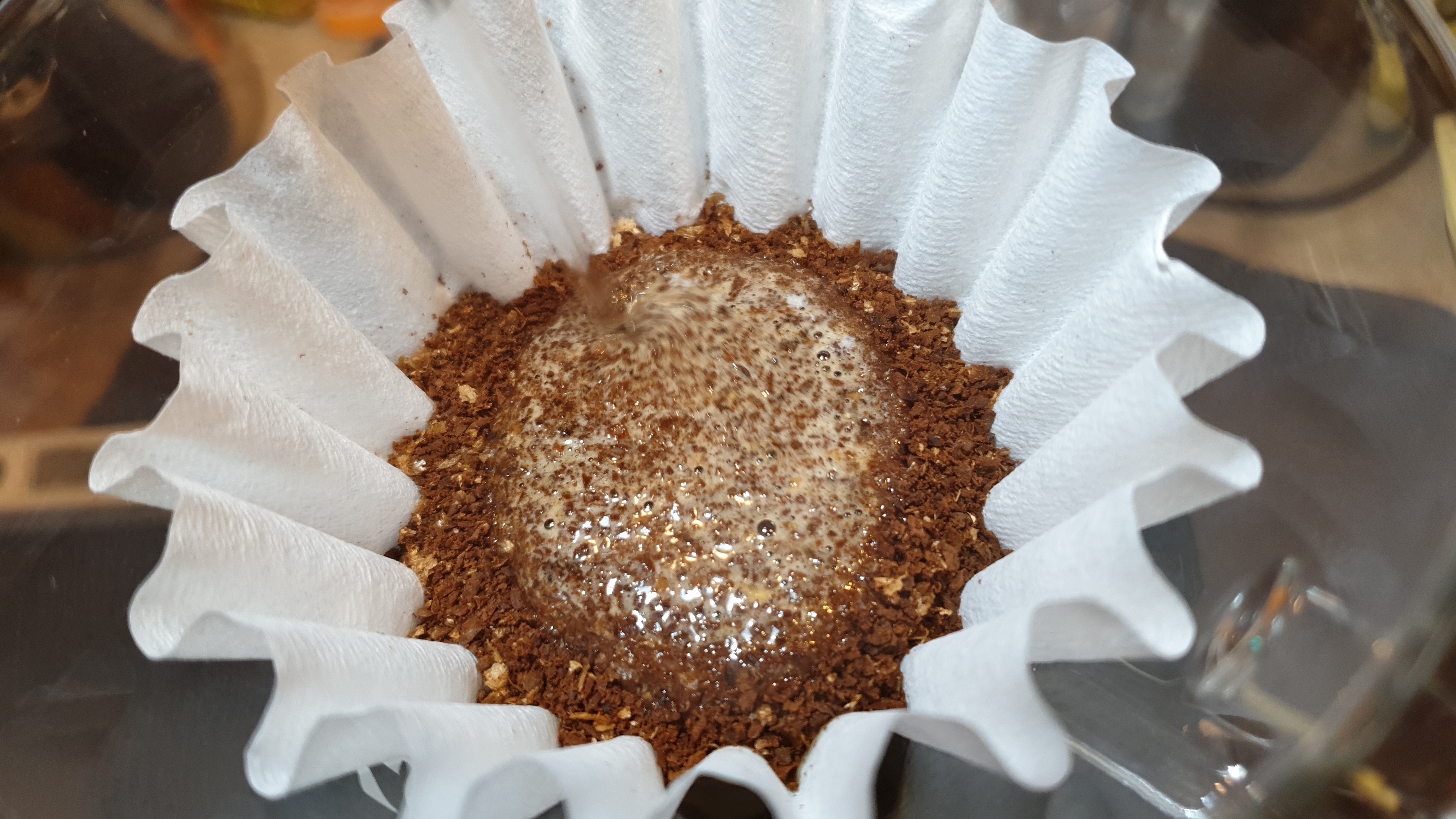 - 30~40초 후, 80ml의 물을 두번 나눠 붓는다.