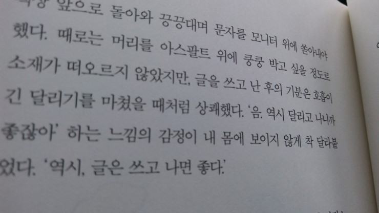 "글을 쓰고 난 후의 기분은 호흡이 긴 달리기를 마쳤을 때처럼 상쾌했다." 나도 그러고 싶다.