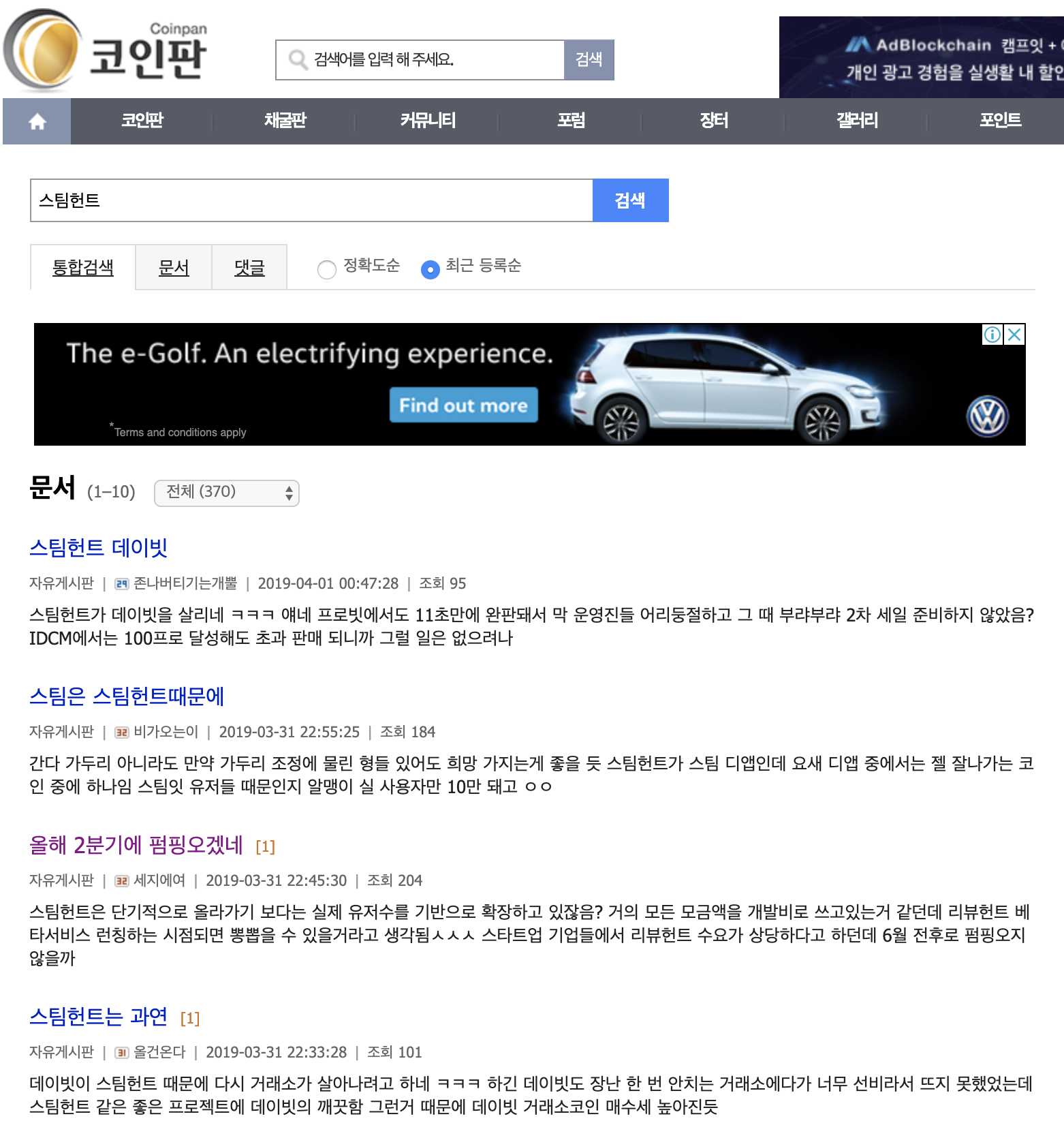 (코인판에서 “스팀헌트"를 검색하면 게시글이 300개 이상 검색됩니다)