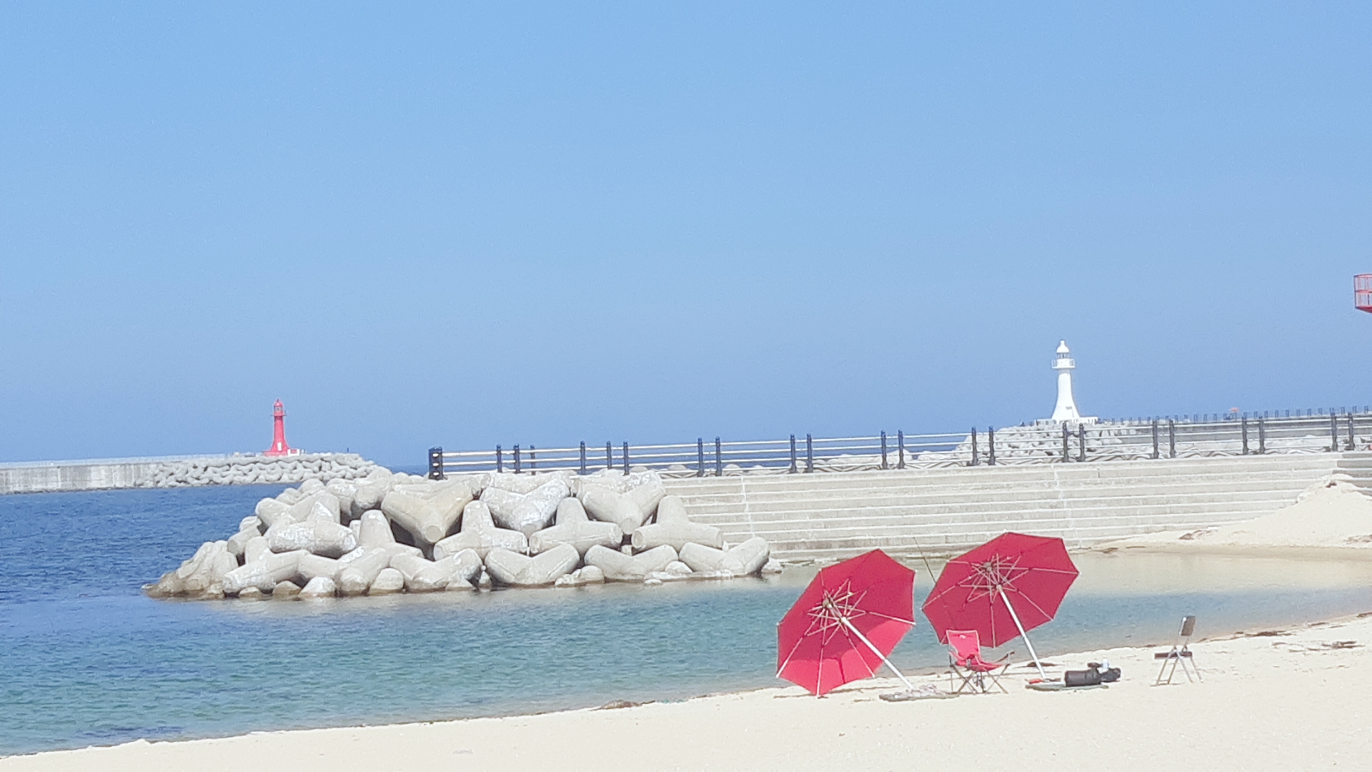 대신, 이 날 바람이 엄청 불어서 정신이 없었지만 모래도 밟아보고 아름다운 바다와 하늘을 보니 힐링 여행이라고 할만큼 기분이 좋았어요^^/