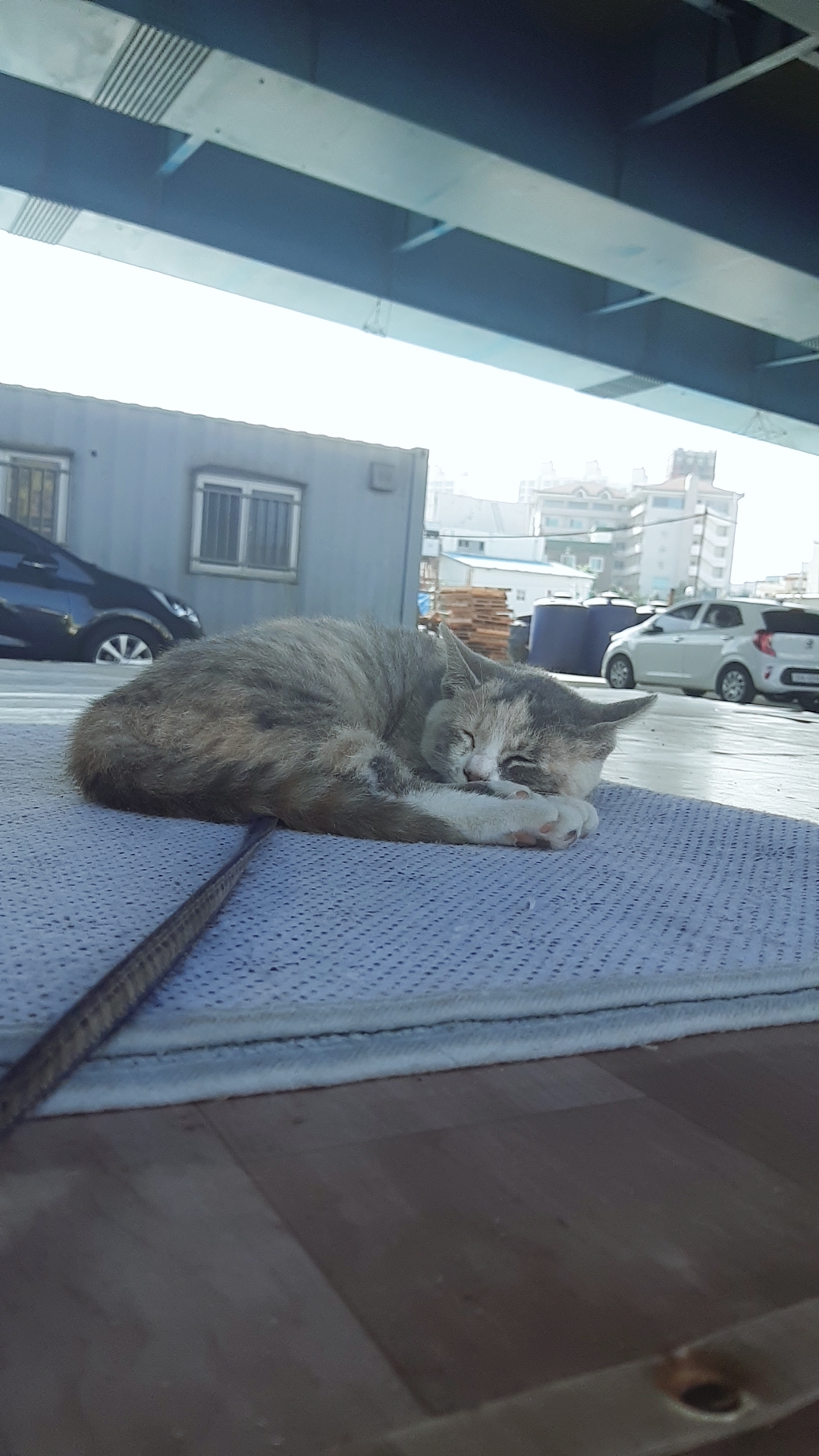 골목길에 그늘에서 눈을 감고 있는 고양이님을 봤는데 너무 귀여워서 사진을 찍었습니다.