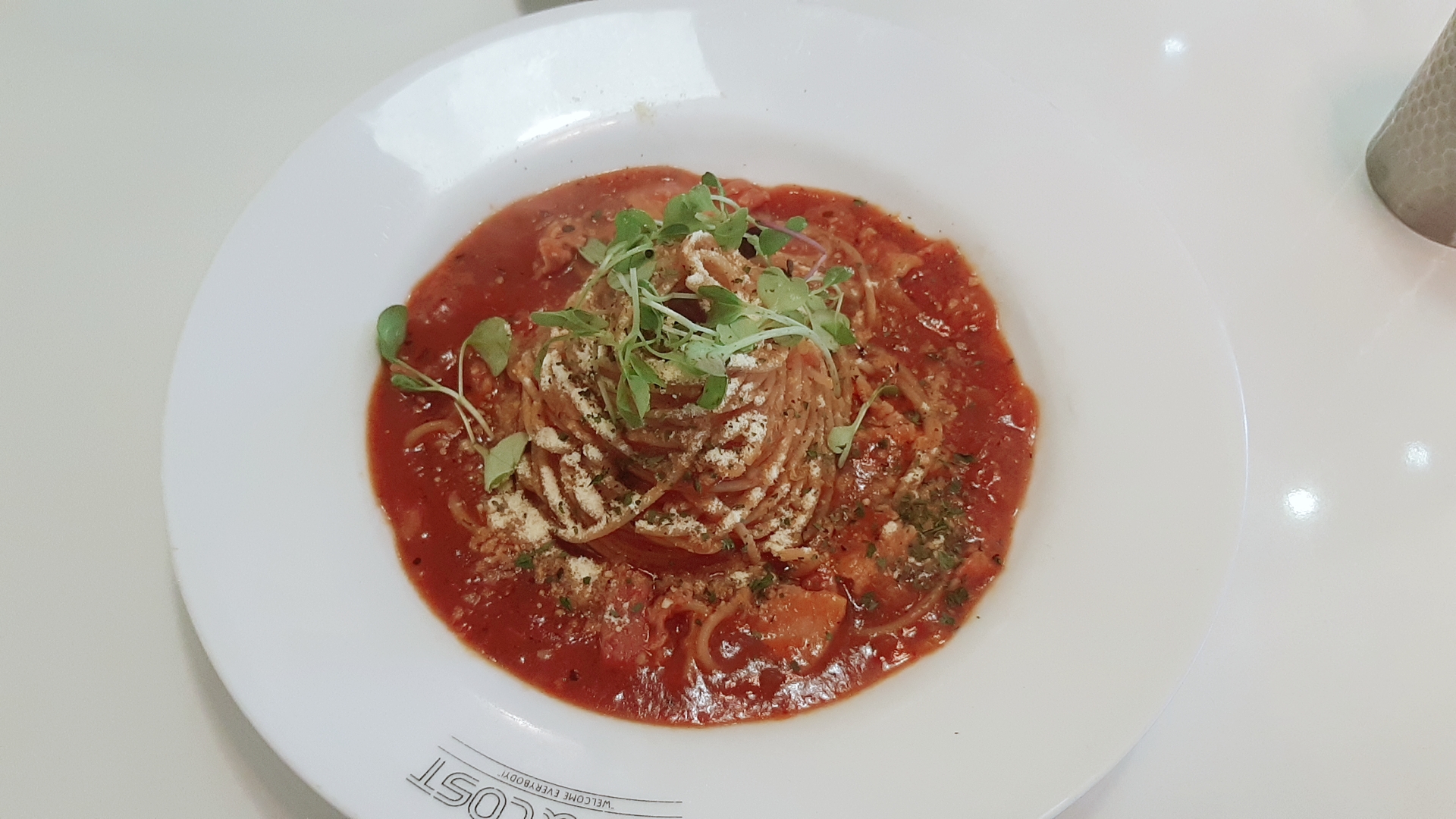 뭐 먹지 하다가 만만한게 파스타 여서 ' 베이컨 토마토 파스타 ' 를 시켰다.