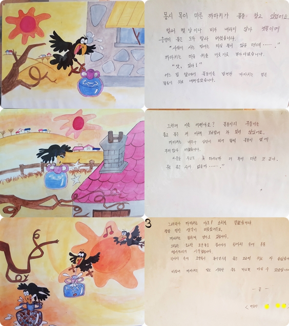 글씨는 집사람 100 %, 그림은 집사람 90 %, 아이가 10 % 정도 그렸다고 합니다.