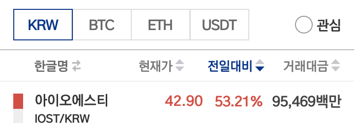 오늘 업비트에 아이오에스티가 상장되었습니다.