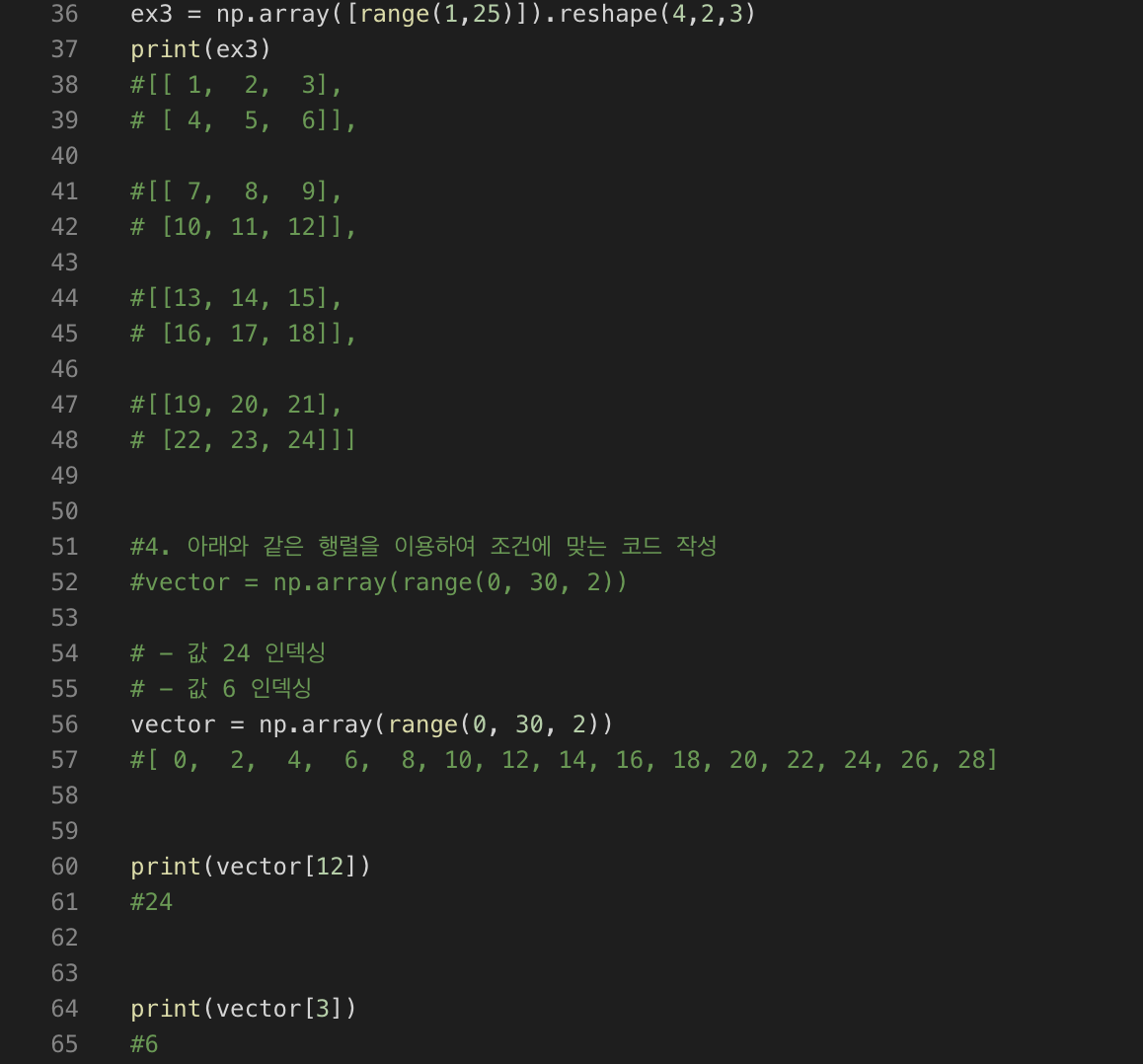 - 3차원 numpy 배열을 만들어 결과와 같이 출력하기