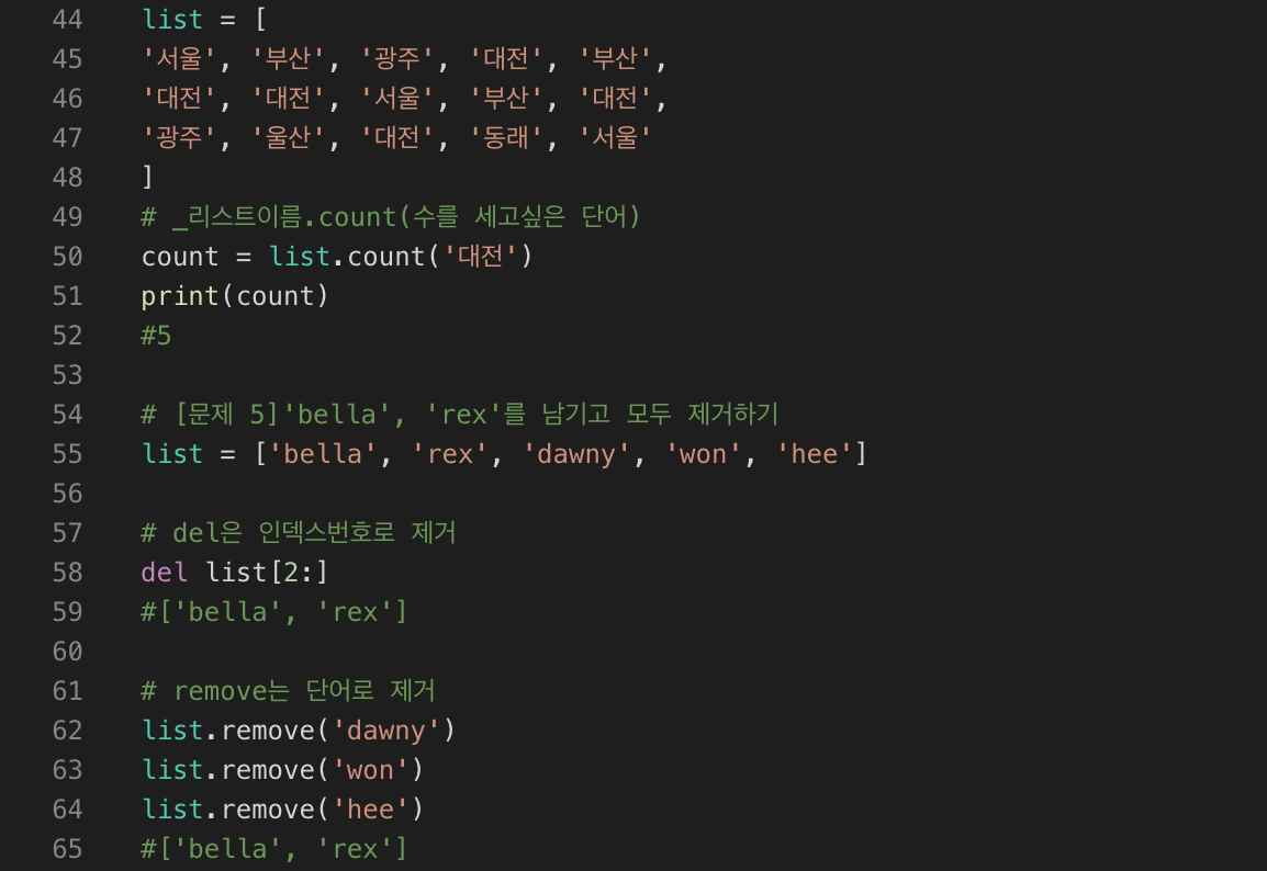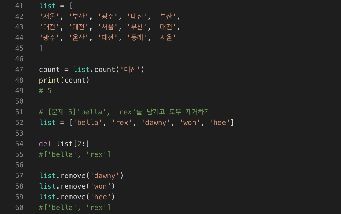 [문제 4] 리스트 안에 있는 '대전'개수 확인하기
