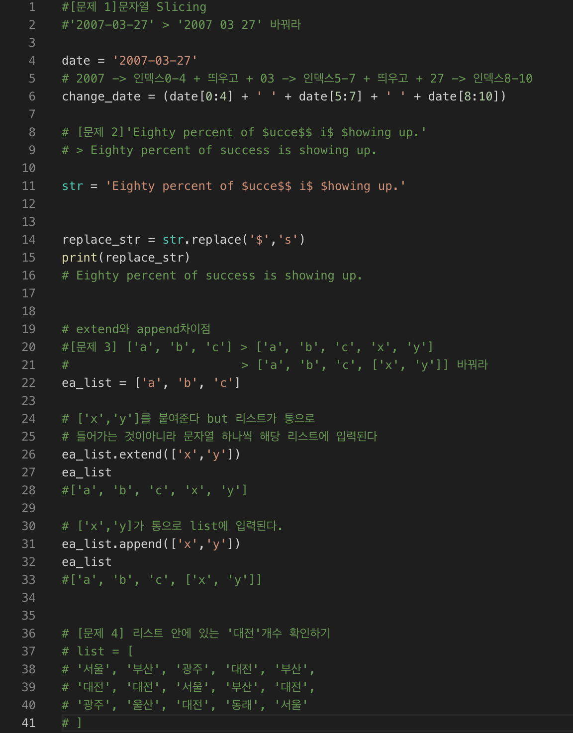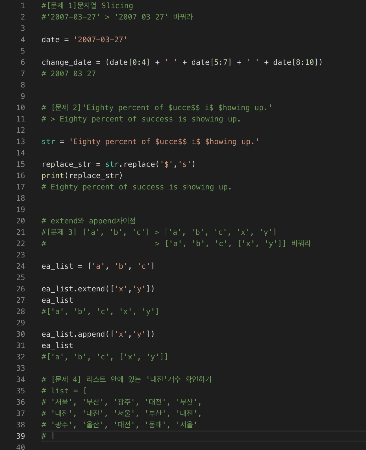 [파이썬 코딩]python / extend / append / extend / append와 replace의 차이점 / count / del / remove / 연습문제
