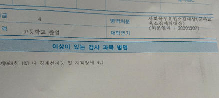 3년의 시간 현역에서 공익으로 바뀌는과정rlagur0302 (33)in #kr • 5 years ago (edited)고등학교졸업후 집에서 백수 처럼 생활하다가 2017년 8월에 논산 훈련소로 입대하게된다. 눈이 사시라 수술을 받고 오라는 군의관님의 판단을 받고 훈련소에서 귀가 . 2년후..... 2019년 9월 39사단 함안에 있는 부대로 군입대 정신 건강 문제로 퇴소 2020년 5월 재검 결과는 치료 기간부족으로 다시 7급 재검 2020년 12월 7일 4급 공익 판정 받음 #military #krlife