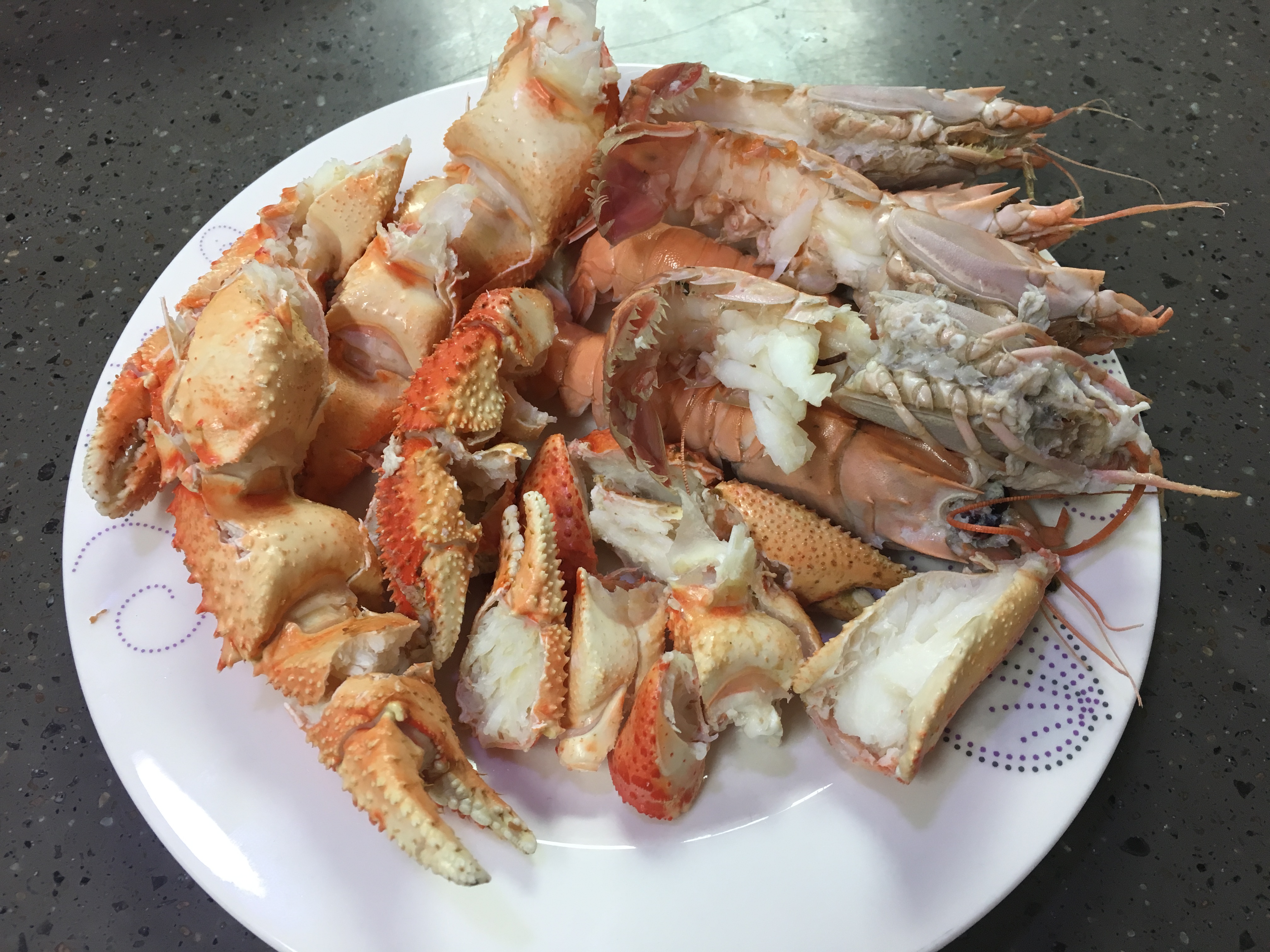 처음 사본 소라게발과 딱새우는 쪄서 먹기 좋게 손질합니다.