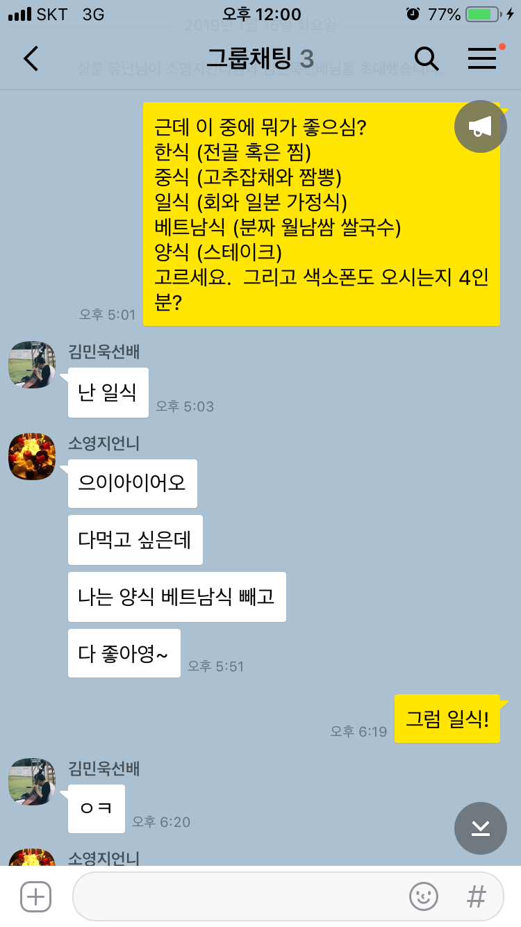 설마 일식을 선택할 줄이야. ㅋㅋㅋㅋㅋ