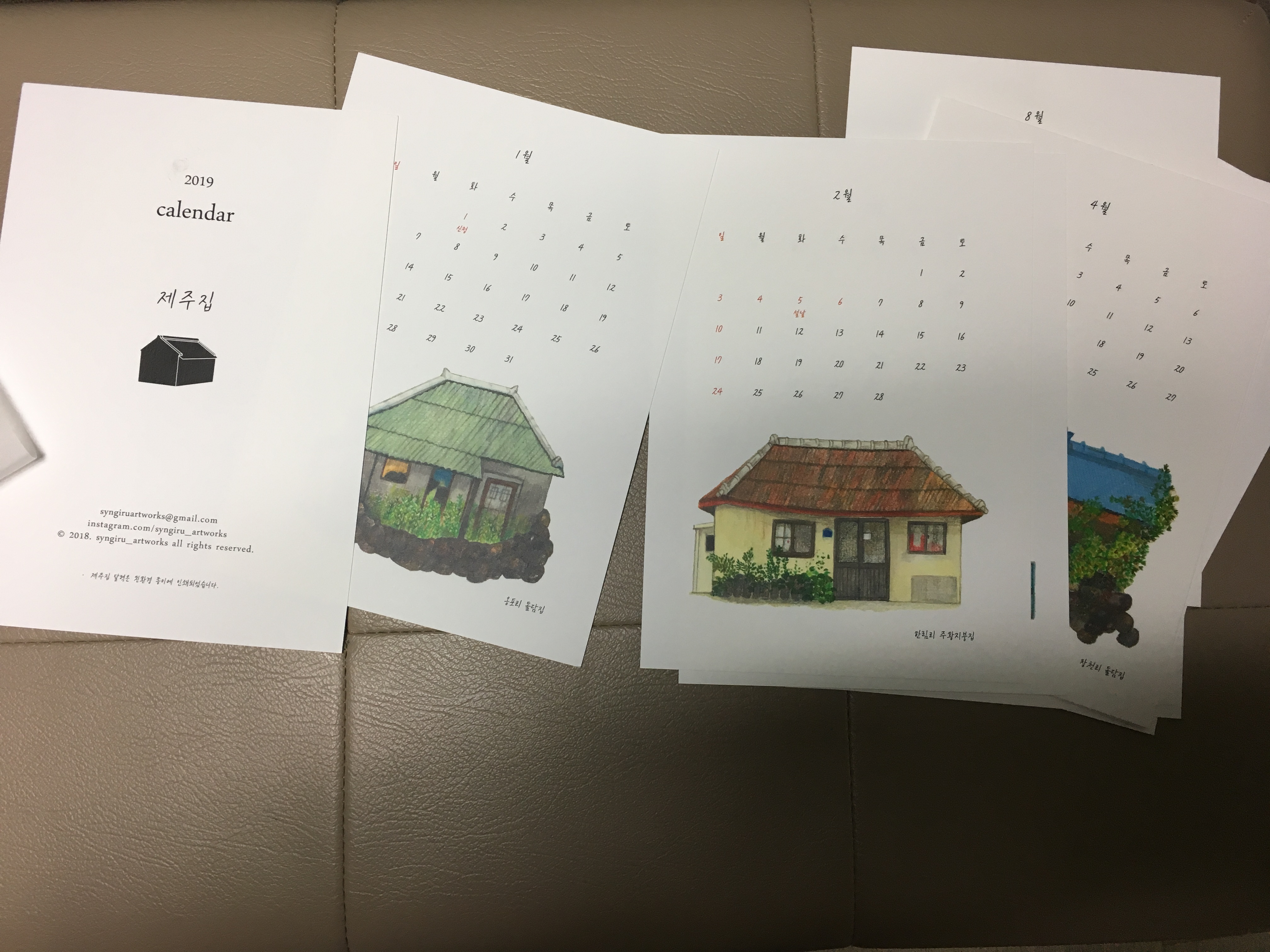 제주도 집을 그리셔서 달력으로 만드셨는데.. 요런 달력은 또 처음이라... 세워 놓는건가 한참 고민했습니다.