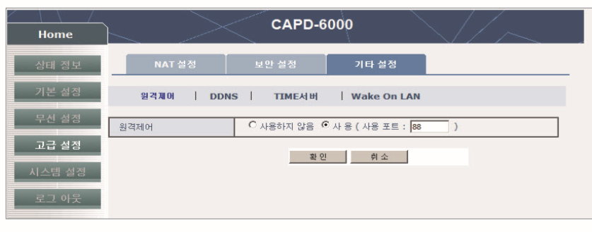 본문에서 말한 원격관리는 외부에서 인터넷을 통해 공유기에 접속하는 기능으로, 공유기 설정에 관한 것입니다. 기종마다 다르지만 제 것은 이렇습니다.